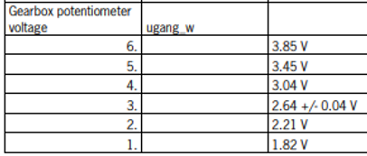 Em seu manual técnico do carro, a Porsche fornece os dados de tensão do potenciômetro rotativo do tambor seletor do câmbio. A terceira marcha é utilizada como referência da calibração, e por isso apresenta a janela de tolerância na tabela abaixo.