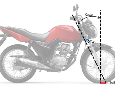 Trail: distância no solo entre o ponto de contato do pneu dianteiro com o piso e a intersecção do eixo da caixa de direção com o solo.
